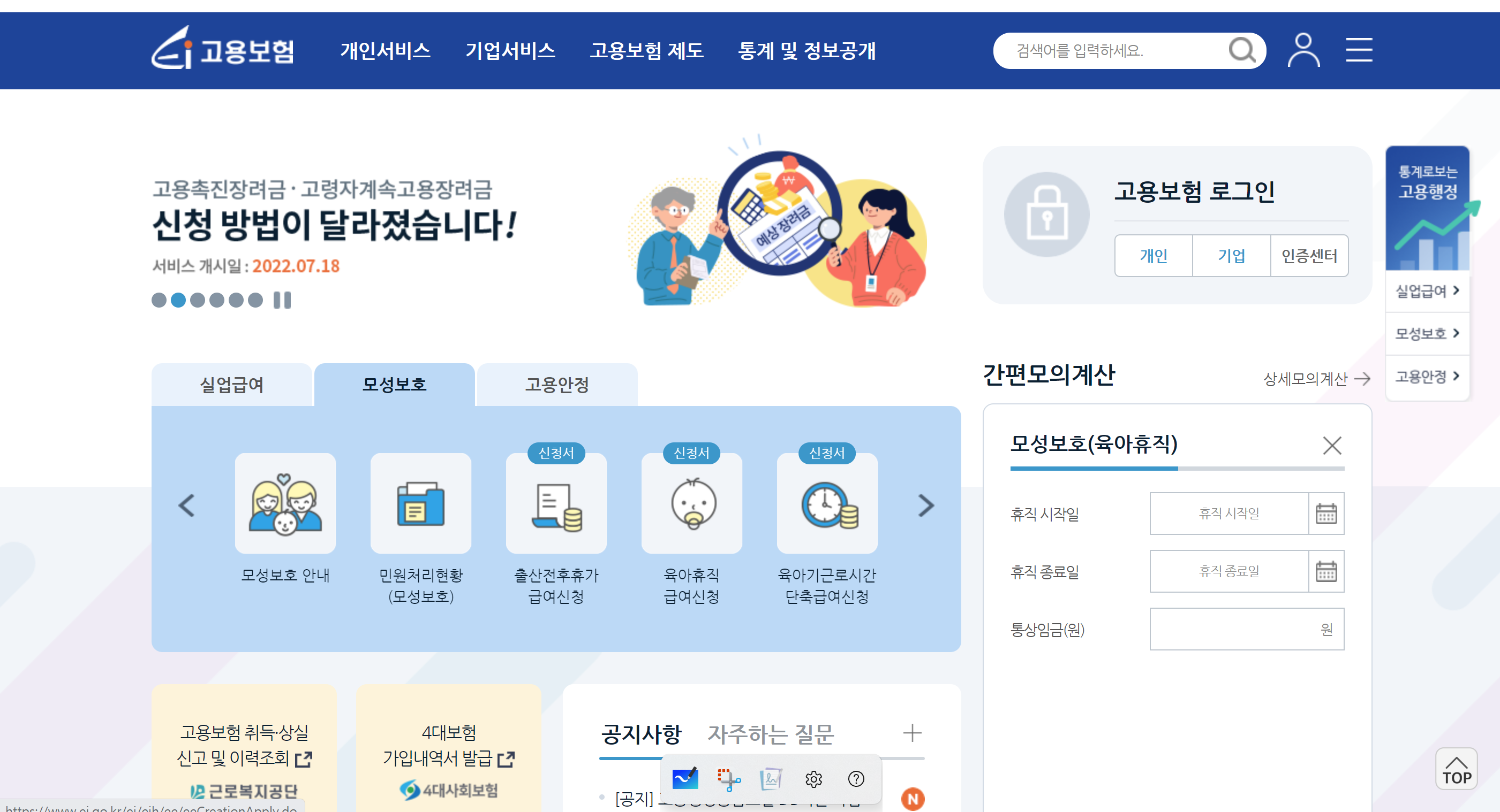 육아휴직 사후지급금은 고용보험 홈페이지에서 신청을 할 수가 있고 스마트폰이나 컴퓨터 둘 다 신청이 가능합니다.
