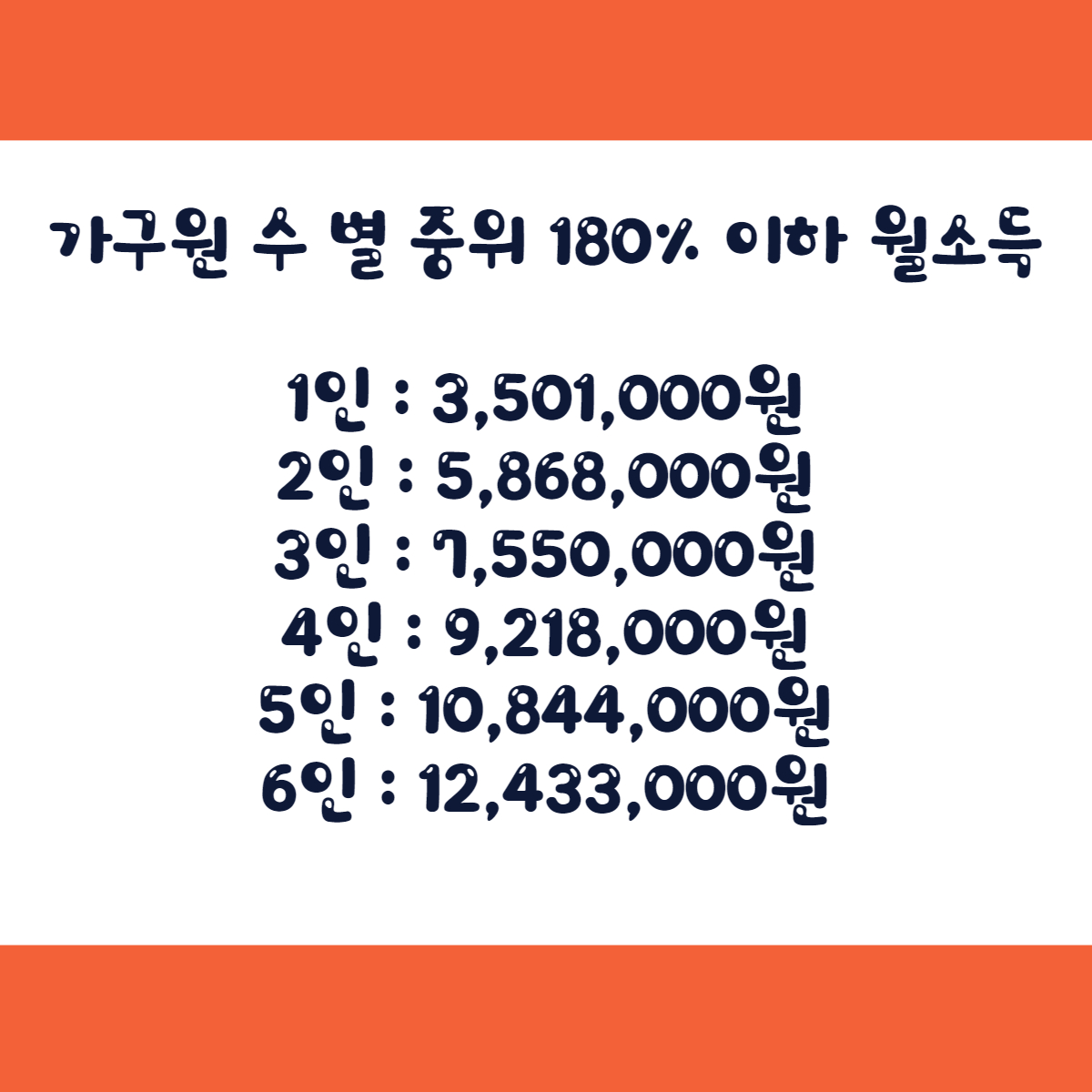 가구원 수 별 중위 180% 이하 월소득
