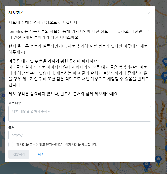terrorless 테러리스 위험지역 알림 사이트